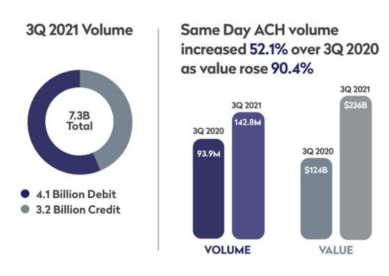 The modern ACH network is thriving with Same-day ACH flourishing in volume and value, as the numbers speak for themselves. Conducive operational hours and limits made it the preferred choice for a lot of stimulus payments that went out as assistance to individuals, homes, businesses, and hospitals last year. Same-day B2B payment and dollar volumes also grew robustly, increasing by nearly 120% and 160% respectively, compared to the same quarter in 2020.