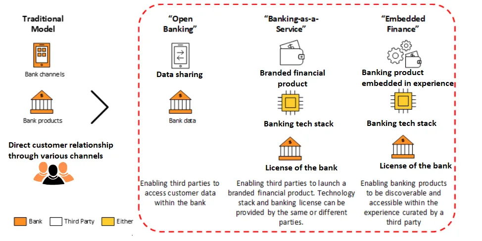 BaaS enables businesses and fintechs to create new products and services along the customer journey by providing the actual products from behind the scenes by providing the tech stack of the bank.