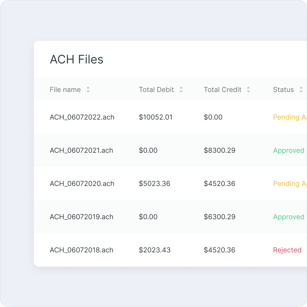 Enjoy a central view of all your incoming and outgoing ACH transactions, and conveniently manage transactions from other payment rails centrally.
