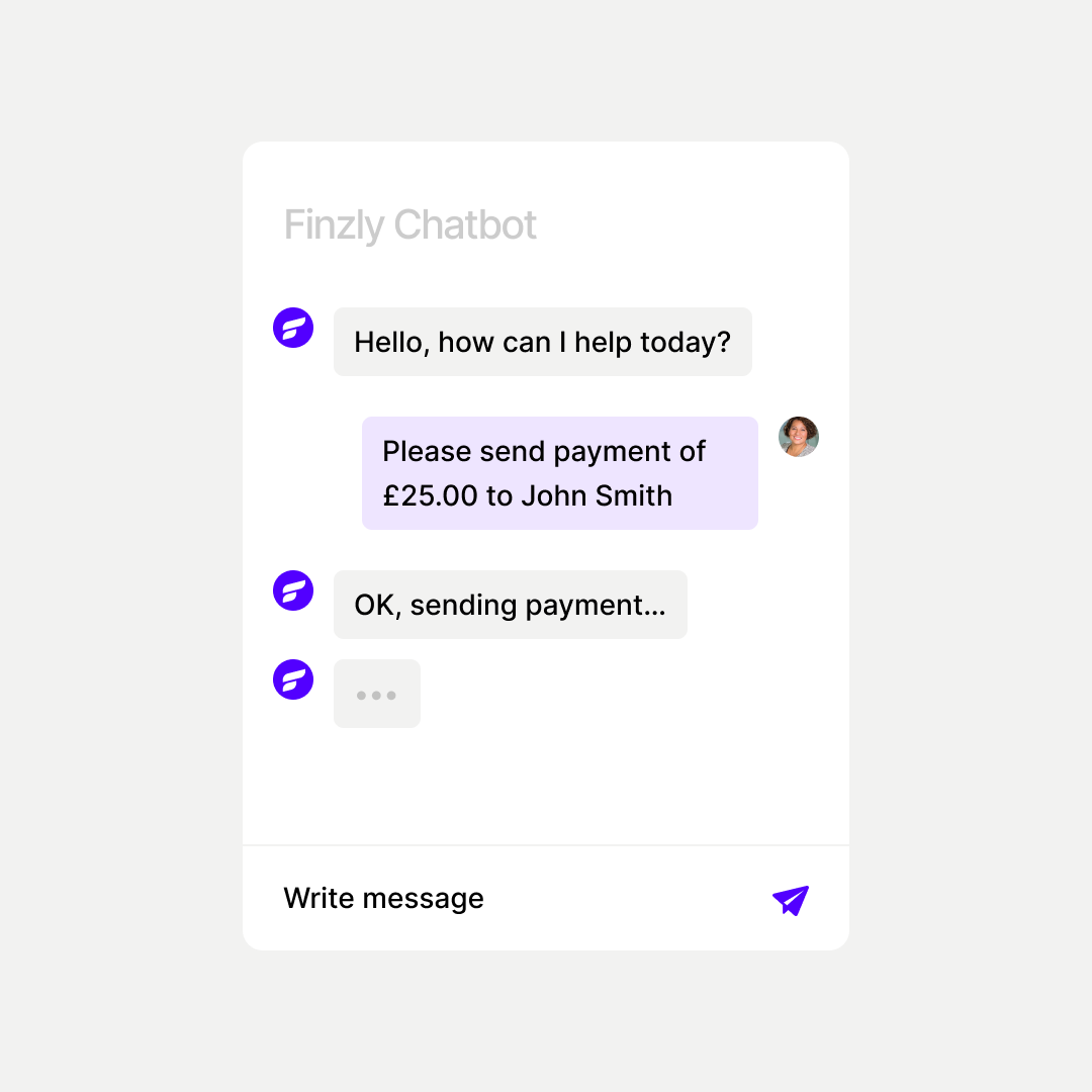 Say hello to Finzly’s chatbot – a new feature to our business banking experience that transforms the way your customers manage payments. An interactive and helpful experience, it’s a whole new way of sending, requesting and receiving payments.