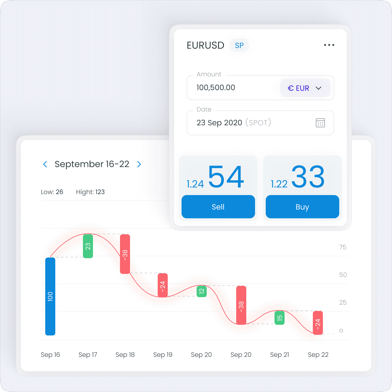 Provide your clients with real‑time market insights and the ability to execute FX trades directly within the platform, without the need to navigate between multiple systems.